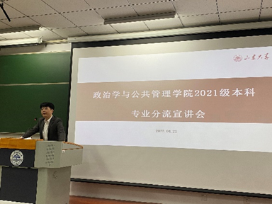 4月21日下午,政治学与公共管理学院在振声苑西楼106教室举行了专业分流宣讲会,布置安排TapTap2021级本科生专业分流相关事宜。2018级本科生助理辅导员刘硕主持此次会议,孙宗锋、唐睿、赵婷三位老师分别作为行政管理、政治学与行政学和科学社会主义专业的教师代表到会宣讲。学院教务秘书葛双林、张恒和2021级本科生辅导员张弘扬参会。