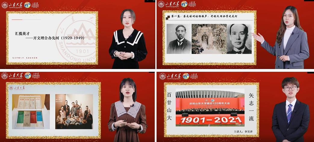四位主讲人分别围绕“峥嵘激越创辉煌”、“群英荟萃续华章”、“鼎新革故扬美誉”和“百廿风华争一流”为主题,先后讲述了我校在青岛办学期间的迁校、停办、复校三次艰难历程,中华人民共和国成立后山大以马克思主义思想为引领,形成“文史见长,加强理科,发展生物,开拓海洋”的办学特色,以及“双一流”建设启动以来,山大坚定不移走“中国特色、世界一流、山大风格”的发展道路,奋力书写“强校兴国”的崭新篇章。政管学子通过讲述一段段动人的校史故事,诉说前辈们不畏艰险、甘于奉献的感人事迹,描绘了我校波澜壮阔、荡气回肠的创业史、发展史和奋斗史。同时通过大学生宣讲校史的形式,展现了政管学子志存高远、勇担使命、拼搏进取的精神风貌。