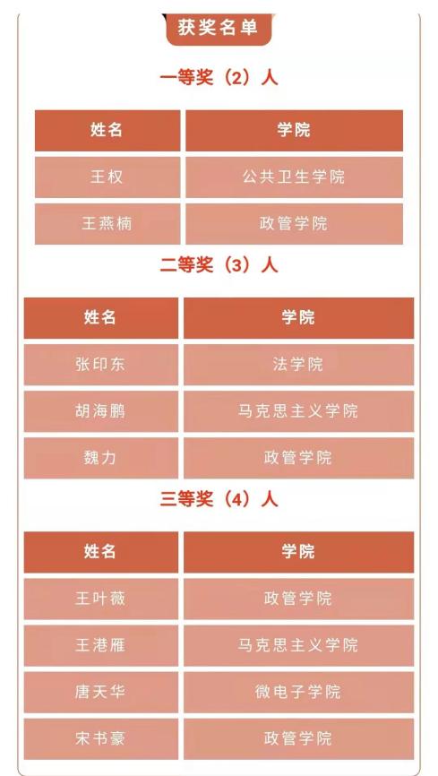 2、他们是TapTap2021年度研究生国家奖学金、道德风尚奖学金获得者:2018级博士研究生于棋、洪扬,2019级硕士研究生张一帆、王亚丰、孙妍、朱鑫磊以及2020级硕士研究生陈钊、郑涵;