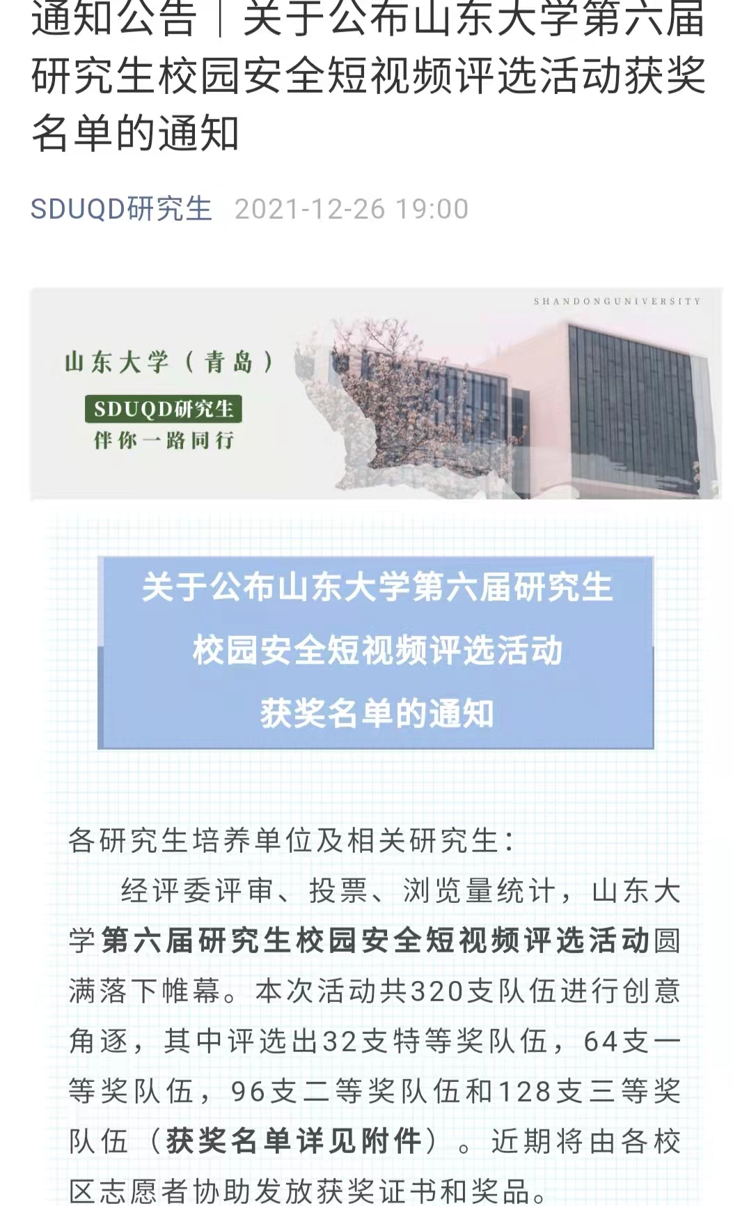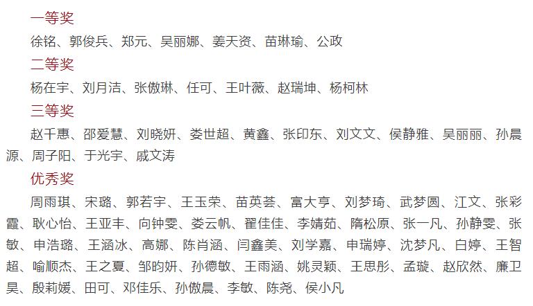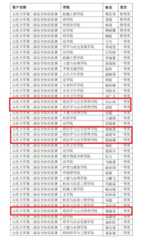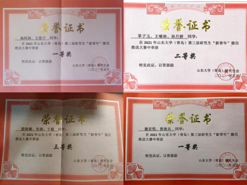 1、在TapTap第二届安全知识竞赛暨第五届消防安全知识竞赛中,我院冯心雨、孙悦等同学获一等奖,付健菲、刘小娜等同学获二等奖,李兆欣、李丽等同学获三等奖;在山大研究生学术行为规范知识竞赛中,我院周雨琪、李贵香、杨歆琦等同学获三等奖,部分同学获优秀奖;