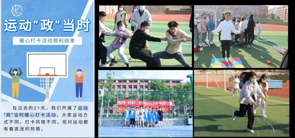 5、学院开创了研究生户外文化体育大课堂、毕业杯”篮球比赛、运动“政”当时21天打卡等品牌性体育文化活动,大力推进常态化体育教育。