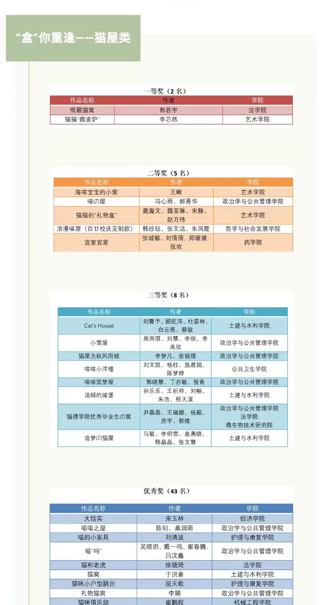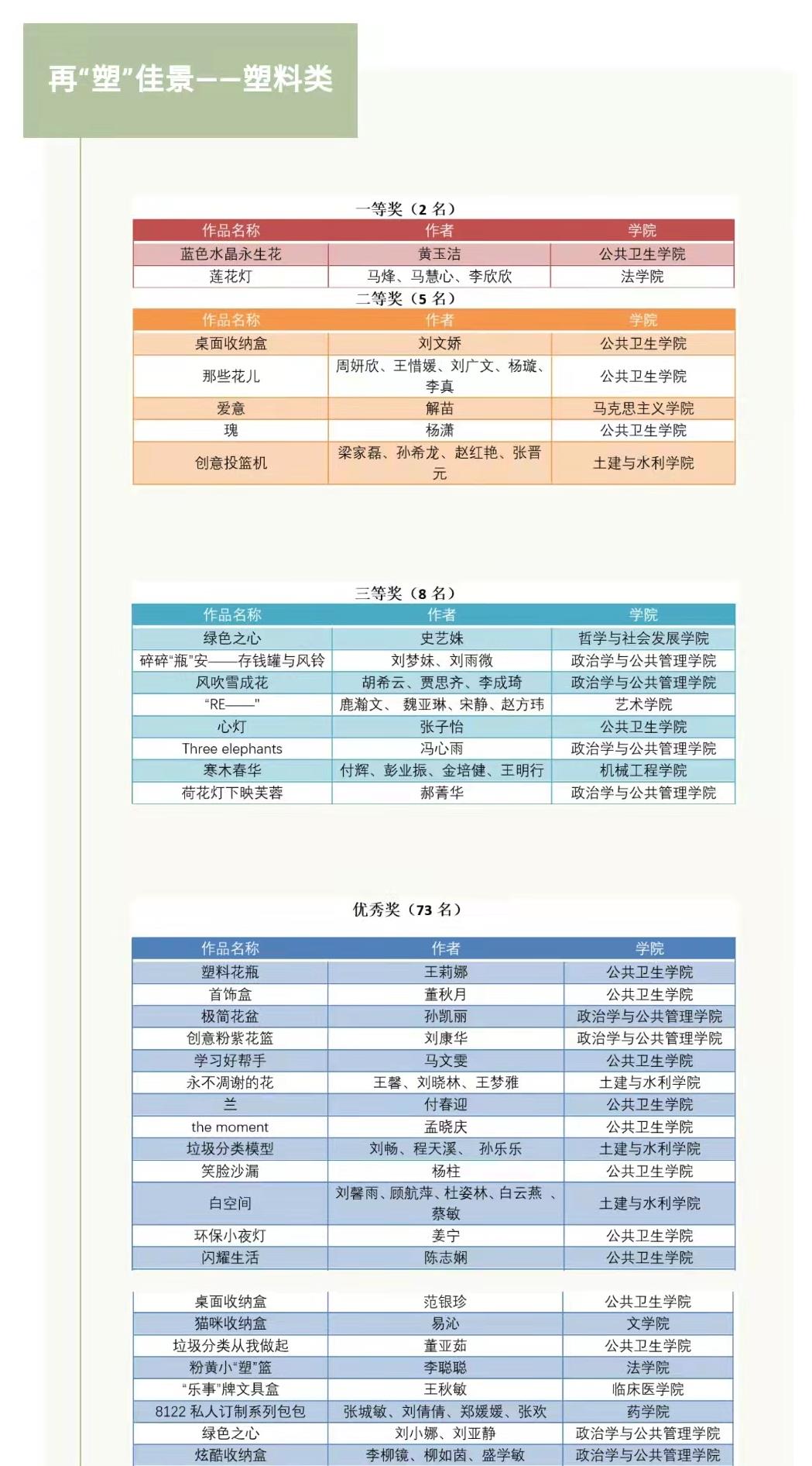 2、在TapTap研究生第二届环保创意比赛中,我院冯心雨团队获二等奖,周雨琪团队、郭晓慧团队等8支团队获三等奖,陈钊团队、吴晓玥团队等34支团队获优秀奖;