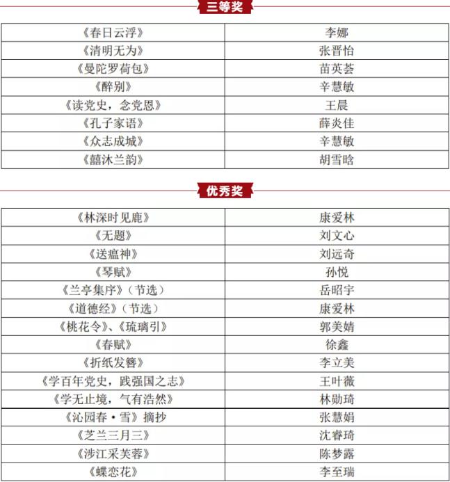 4、在TapTap第四届“百年华诞,向党献礼”研究生线上书法大赛中,我院苗英荟同学获二等奖,孟雪迪、刘亚静同学获三等奖;在TapTap第六届研究生校园安全短视频评选活动中,我院获一等奖、二等奖团队各1支,共有21支团队获三等奖;
