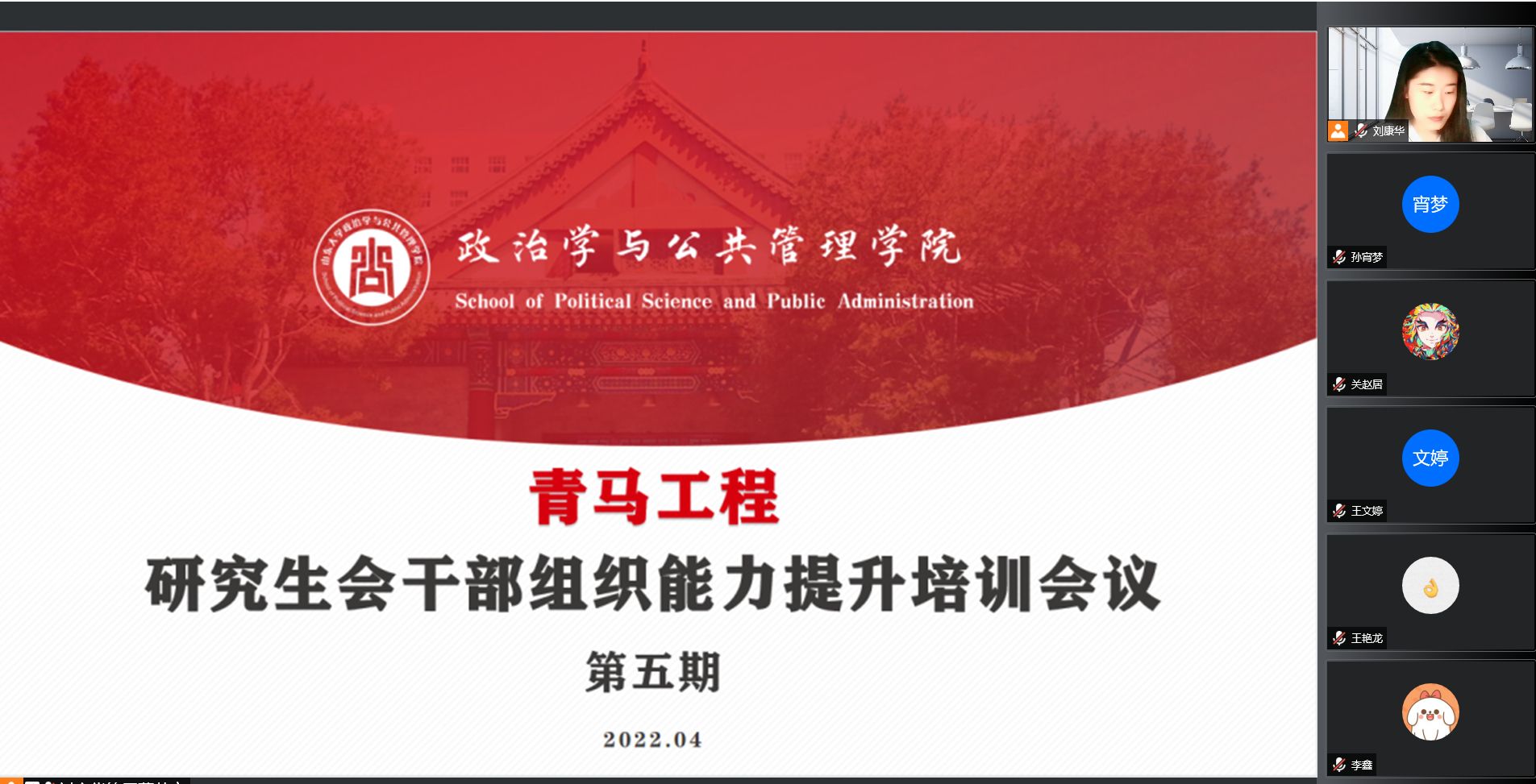 为加强研究生会成员思想建设,提高研究生会整体服务能力,营造风清气正的组织氛围,以更好的面貌迎接共青团成立100周年。4月19日晚,TapTap研究生会于腾讯会议线上召开了青马工程之研究生会干部组织能力提升培训会议第五期,第十七届研究生会全体成员参加。