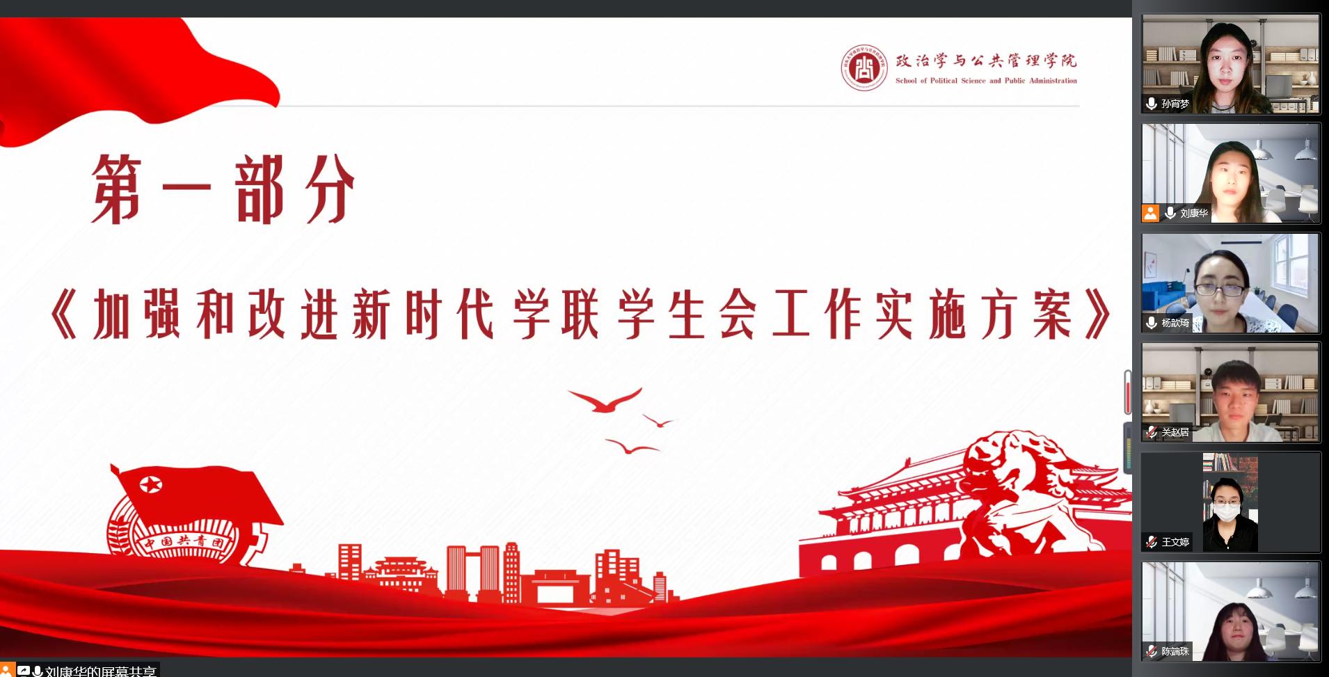 会议共分为两部分。第一部分,由研会办公室领学《加强和改进新时代学联学生会工作实施方案》。全体成员共同学习总体目标和要求:以习近平新时代中国特色社会主义思想为根本遵循,贯彻落实习近平总书记关于青年工作的重要思想和关于教育的重要论述,紧跟时代步伐,把握青年学生工作特点和规律,着力服务广大同学普遍性需求,着力提升服务大局水平,着力深化改革创新,不断提升同学满意度、大局贡献度、社会认可度;深入研读重点任务,深刻理解“知行工程”、“聚力工程”和“强基工程”的实施内涵。
