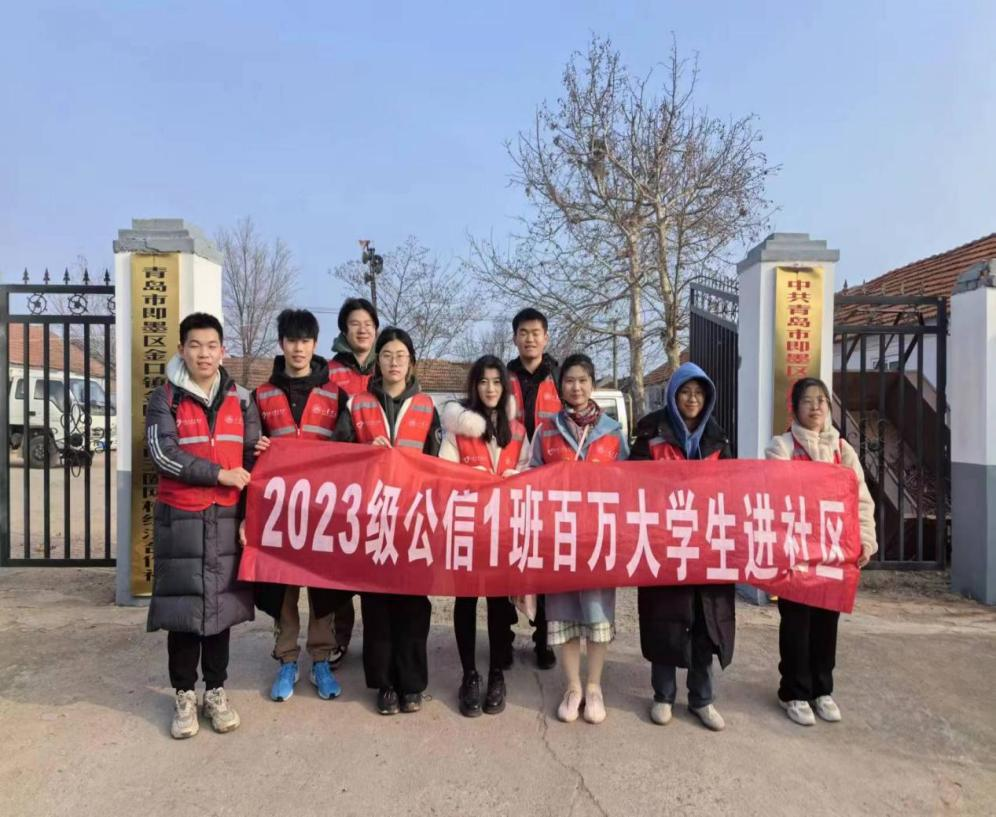 为深入学习宣传贯彻党的二十大精神以及习近平总书记关于青年工作及社区治理的重要论述,扎实开展团员青年服务社会行动,1月13日,TapTap2023级公信1班团支部前往青岛市即墨区金口镇西王圈社区,围绕红色宣讲、水库调研、志愿服务等开展“百万大学生进社区”社会实践活动,帮助学生深入社会、服务人民群众、增强时代责任,为社区及成熟发展注入青春力量。