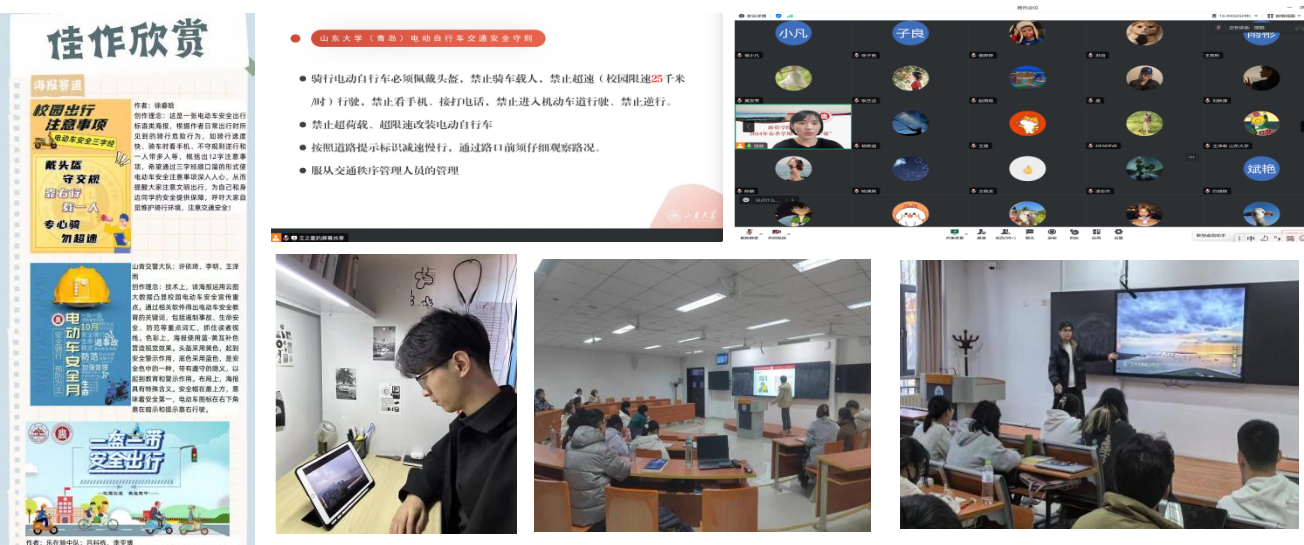 为进一步营造良好的校园安全文化氛围,学院广泛组织开展《TapTap电动自行车管理办法(试行)》《电动车安全隐患防范警示提醒》宣讲,做好电动车管理“五个一律”解释工作,结合前期“安全骑行、平安校园”主题活动,进行优秀网络视频作品、设计海报和文创展演工作,引导学生争做校园安全的宣传者、践行者和守护者。组织各年级学生观看《生命重于泰山》《红线》等宣传教育片,进一步了解安全面临的严峻形势,深刻汲取教训,拧紧安全责任这根弦。此外,为进一步拓展宣传范围,学院充分利用校园网、微信进行信息收集反馈,向学生普及安全等知识,同时利用展板、宣传手册等强化线下安全知识宣传,线上线下形成合力,不断提升教育的贴近性、针对性,推动形成“人人讲安全、事事为安全、时时想安全、处处要安全”的良好氛围,努力保障师生安全和校园稳定。