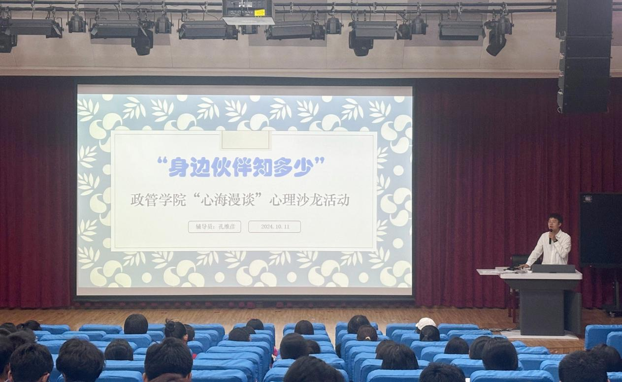 互动游戏环节将现场气氛推向了高潮。通过“身边同学知多少”“我们的家乡”等心理游戏,同学们互相回答趣味横生的问题,比如“你舍友的家乡是哪里?”“你左侧的同学叫什么名字”“舍友最喜欢吃的一道菜是什么?”,不仅激发了同学们的好奇心和参与热情,更在轻松愉快的氛围中加深了彼此之间的了解,提高了沟通能力和团队协作能力,也为同学们提供了一个释放学习压力的出口,让大家在紧张的学习之余,能够享受到纯粹的快乐,收获珍贵的友谊。心理交流环节则为同学们提供了一个深入探讨自我认知和心理健康的平台。在孔维彦的引导下,同学们围绕“如何更好地认识自己”“如何面对压力和挑战”等话题展开了热烈讨论。大家分享了自己的经历和感受,共同探讨出了许多应对压力和挑战的有效策略和方法,让每个人都感受到了集体的力量与温暖。
