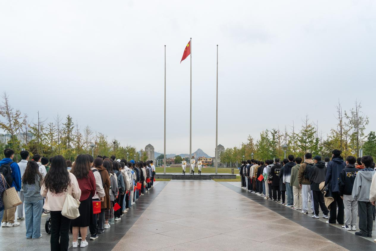 上午7时,升国旗活动正式开始。全体与会学生整齐列队,肃立广场,目光齐聚中,国旗护卫队迈着坚定步伐,护送五星红旗至升旗台。随着庄严国歌声响起,全体与会学生肃立注目,向国旗行注目礼,鲜艳的五星红旗冉冉升起,迎风飘扬。