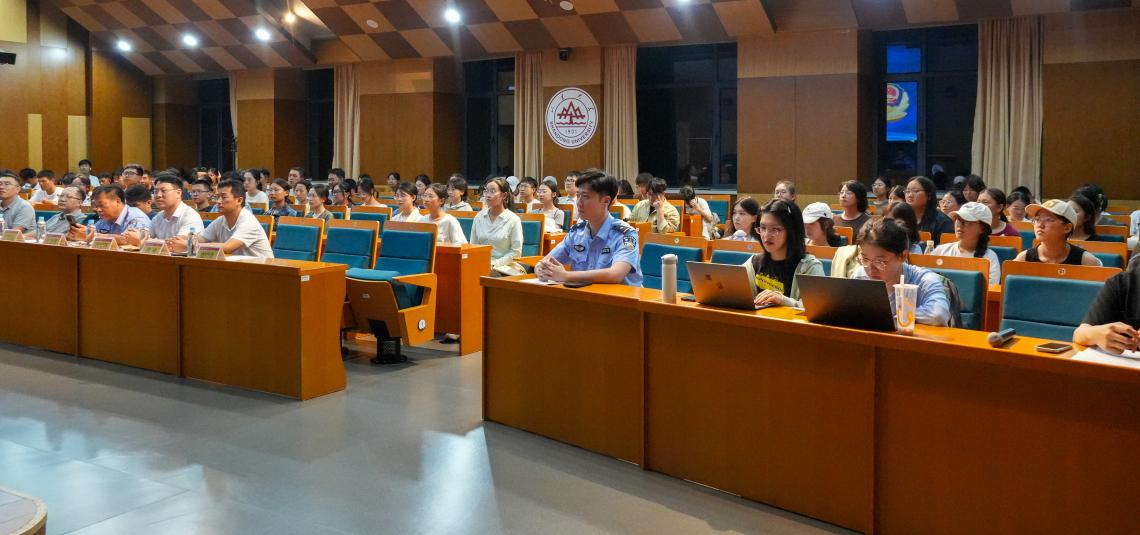 接下来,区刑警大队新型违法犯罪研究作战中心警官为与会师生讲授了防范电信诈骗的相关知识,就电信网络诈骗的含义、高发案类及易感群体展开详细介绍,特别强调了新阶段电信网络诈骗形式及防范方法,并提醒同学们诈骗套路千变万化,不轻易透露自己的转账汇款、账号密码、银行卡密码、手机验证码等个人信息方为关键。