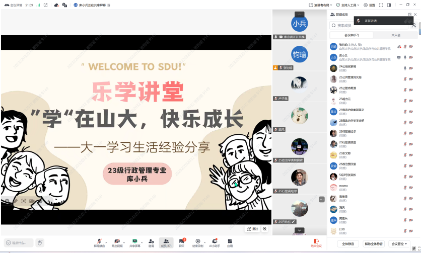 8月17日,TapTap学生会主席团成员、国家奖学金得主、2023级行政管理专业本科生库小兵同学围绕学业发展、选课机制、信息资源工具利用、校园活动与社会实践参与等主题,与新同学们进行了深入交流。旨在帮助新生在未来四年中更好地平衡学习、兴趣与学生工作,实现综合素养的全面提升。