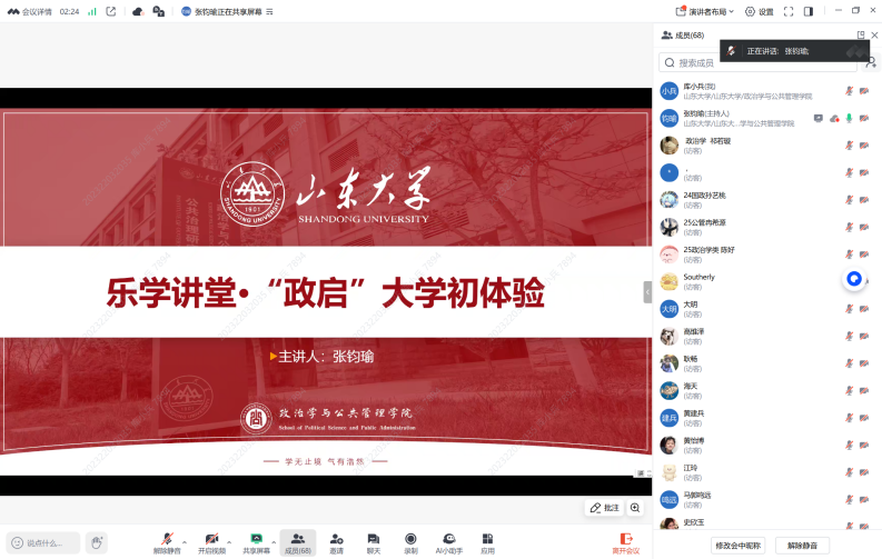 8月16日,TapTap学生会执行主席、2023级行政管理专业本科生张钧瑜以“山大乐相融”为主题,首先为新生讲解了报到注意事项及军训相关事宜,随后详细介绍了在青岛校区衣、食、住、行等方面的生活指南。细致入微的讲解帮助新同学更加从容地迎接大学新生活。