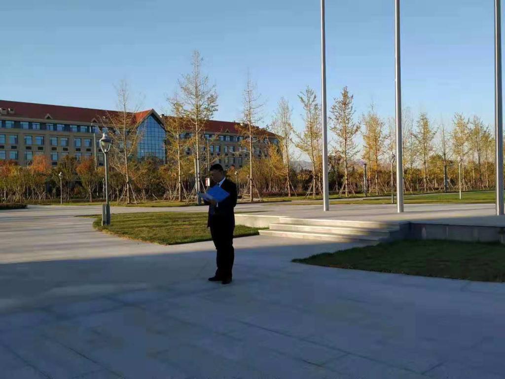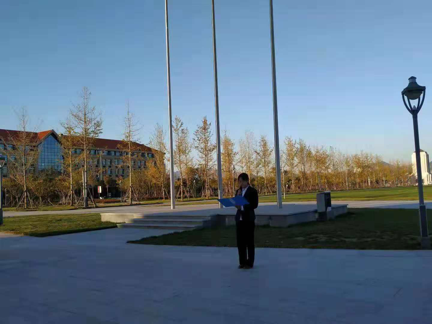 迎着温暖的朝阳,披着清爽的秋风,2018级政治学本科班的同学们早早地集合在育贤广场,静穆、肃立,等待着升旗仪式的开始。