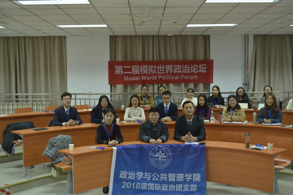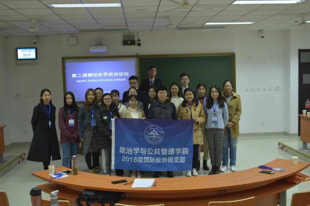 2018年11月19日星期一,政治学与公共管理学院2016级国际政治团支部举办了模拟世界政治论坛活动。本次活动由国际政治班团支部主办,邀请了政治学与公共管理学院国际关系专业的马风书老师做点评嘉宾。