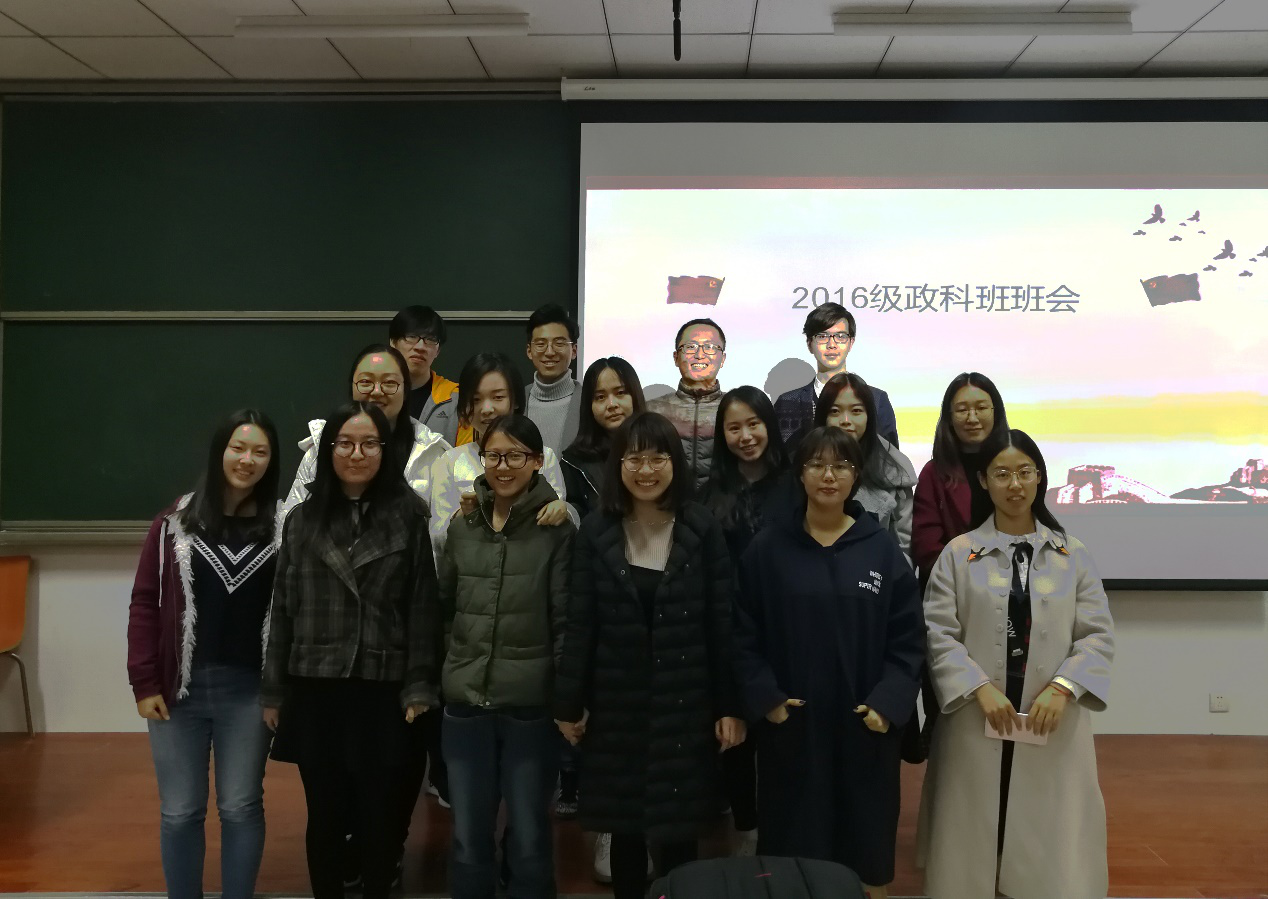 11月22日TapTap2016级政科班在N108举办教学实习交流班会。11月初政治学与行政学专业的同学由兰华老师带队,赴济南进行教学实习,重点参观中心校区、洪家楼校区和兴隆山校区。11月中旬科学社会主义专业的同学由吕连仁老师、赵婷老师带队,赴威海进行教学实习,重点参观威海的党建基地和爱国主义教育基地。班会由政科班全体同学参加,班长杨静轩主持。