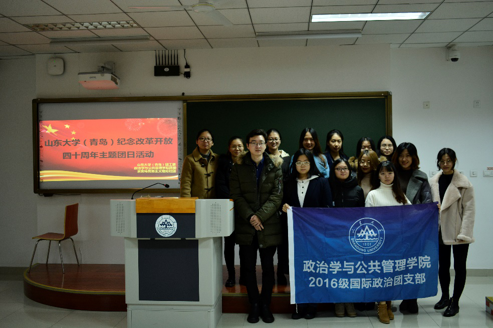 12月6日,为了纪念改革开放四十周年,政治学与公共管理学院2016级国际政治团支部举办了“回顾改革开放40年”的主题团日活动。活动中,为了让同学们对改革开放40年的光辉历程有一个更加深刻的认识,团支部组织全体同学,观看了改革开放40周年系列纪录片《历史告诉未来》和《亲历——改革开放40年,从“有啥吃啥”到“吃啥有啥”》。这两个纪录片一个宏观一个微观,从改革开放的光辉历史和人民群众的亲身感受两个维度,让团支部的同学们又重新回顾了改革开放40周年以来我们国家的伟大转变和人民生活水平的不断提高。