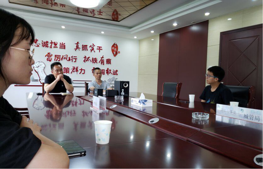 团队成员根据之前的调研结果,向有关负责人提问,双方就梁庄社区的情况展开问答,市中区城管局的有关负责人对此进行详细解释,并结合之前尝试过的政策进行补充。