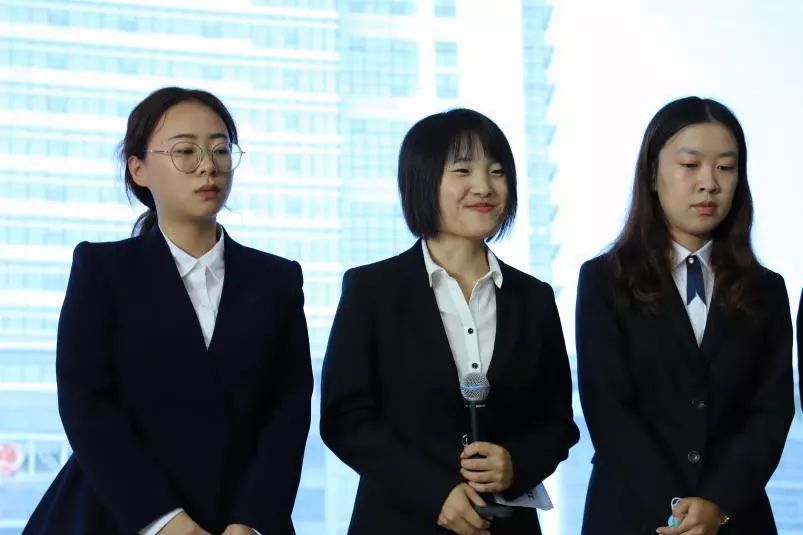 在主持人介绍完评委老师与比赛流程及规则后,比赛正式开始。各队按抽签顺序进行项目展示、情景模拟与答辩。“玛珈政语队”从优秀屏幕制造公司的一个办公室开始演绎,再转到市长办公室,引出调研团队的调研活动,并指出要出台政产学研新政策,做整合创新资源的引路人。