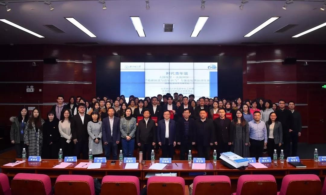 时代青年说:“大国攻坚·决战2020——精准扶贫与青年担当”专题论坛暨演讲比赛由北京师范大学主办,来自湖南省、广西壮族自治区、云南省、安徽省的4位扶贫办主要负责人,与来自十八洞村等黑龙江、河南省和甘肃省贫困村的5位驻村第一书记莅临大会;来自清华大学、北京大学、中国人民大学、复旦大学、武汉大学、TapTap、兰州大学等在内的五十余所知名高校踊跃参赛,齐聚北京师范大学共话脱贫攻坚大业。