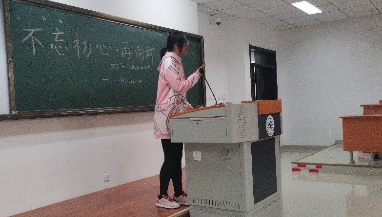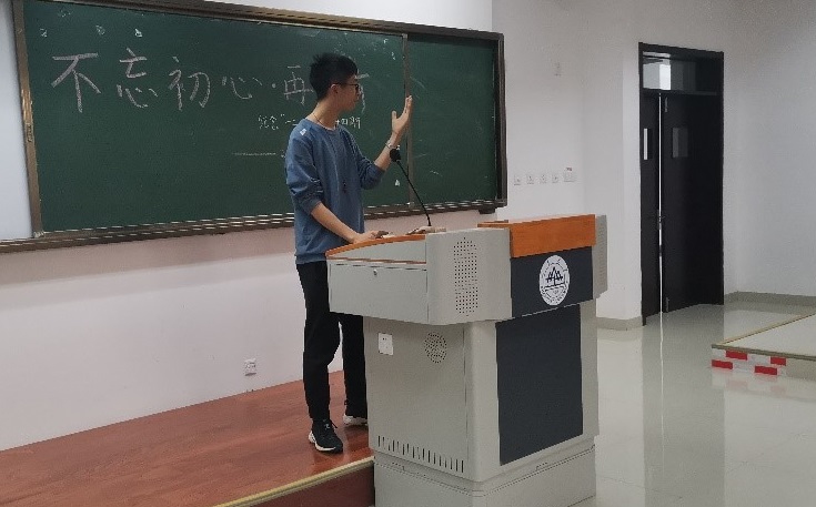 随后杨文涛同学做出了以“不忘历史,肩担重任”为主题的振奋人心的演讲,他说:“中华儿女的一腔热血永远存于心间,作为新时代青年应不忘历史、奋勇向前”。