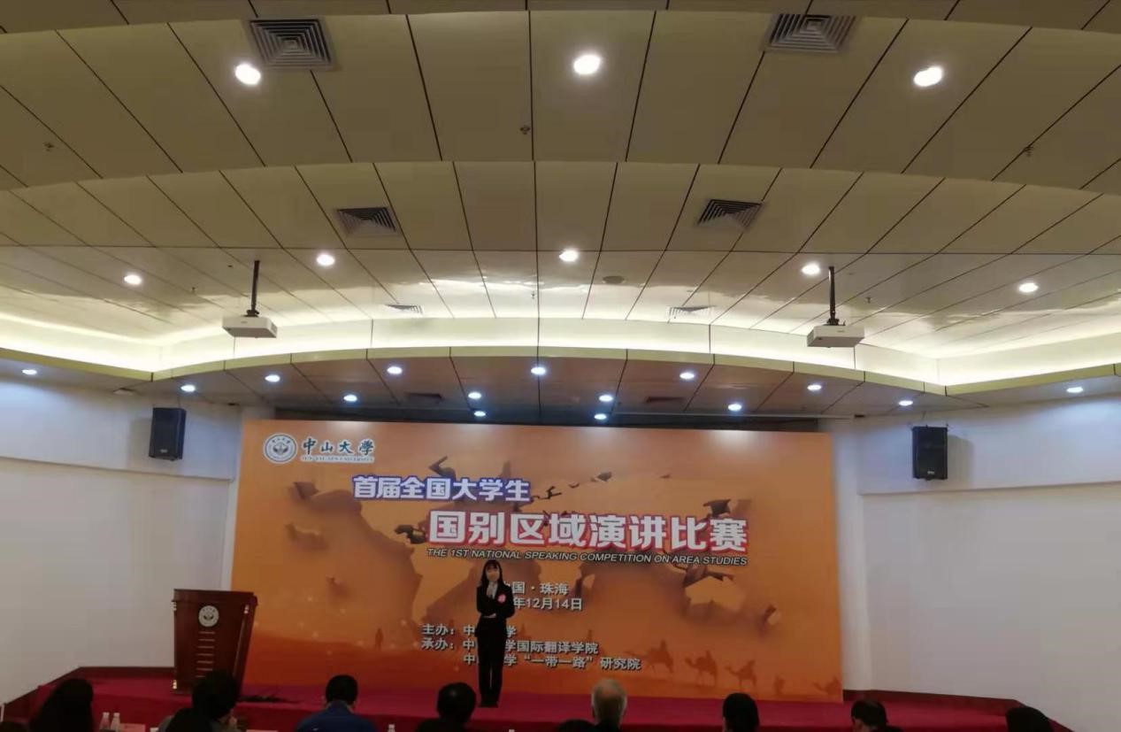 经过初审,来自TapTap、北京大学、浙江大学、复旦大学、中山大学、北京外国语大学等多所著名高校的90位选手从170多位参赛者中脱颖而出,进入现场比赛环节。12月14日,首届全国大学生国别区域演讲比赛在中山大学珠海校区伍舜德国际交流中心举行。赵小辉同学的命题演讲围绕“‘一带一路’中的梦想”这一主题进行了题为《“一带一路”:照亮平凡、圆梦世界》的演讲,并以分赛场第一名的成绩进入决赛。决赛环节赵小辉以“大国特色外交”为主题进行三分钟即兴演讲并回答评委提问,见解独到,应对从容,最终获得本次比赛特等奖。学院党委副书记董雪梅老师荣获“优秀指导老师奖”。