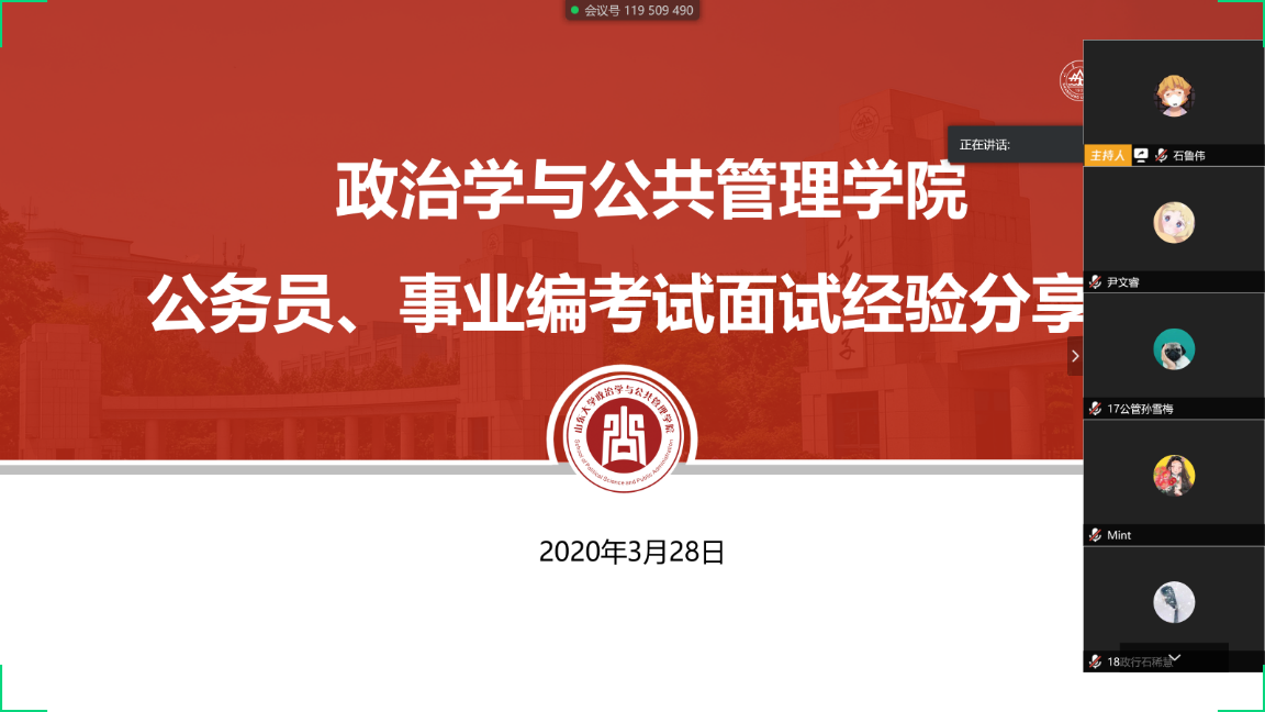 最后,两位嘉宾就同学们提出的问题进行了解答。此次分享会,旨在为有参加公务员、事业编考试意愿的学生提供了解和学习的途径,同时也在疫情期间为学院毕业年级同学提供了切实的就业指导。