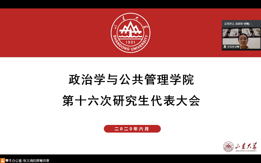 最后,主持人对与会的各位领导嘉宾和研究生代表表示了感谢。随着本次线上大会各项议程的顺利完成,政治学与公共管理学院第十六次研究生代表大会圆满结束。