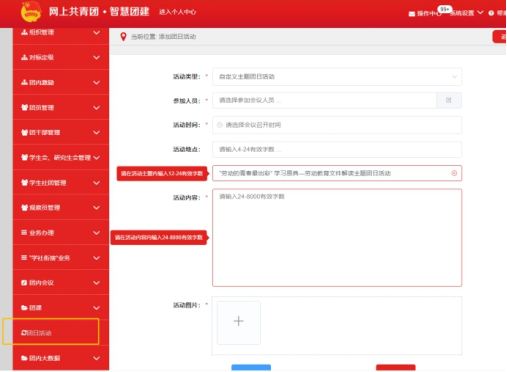 以习近平总书记关于劳动教育相关指示、《中共中央国务院关于全面加强新时代大中小学劳动教育的意见》《中共TapTap委员会关于全面加强新时代学生劳动教育的行动方案》等讲话和文件为基准,参考《关于<中共TapTap委员会关于全面加强新时代学生劳动教育的行动方案>的政策解读》PPT文件,以团支部为载体,对其进行领读学习,对精神内涵进行宣传解读,推动文件政策到每个团支部、每个成员。各支部学习劳动教育文件情况以支部为单位于12月6日前录入智慧团建系统“团日活动”板块,具体录入流程:“团日活动”、“活动发布”、“确定”,活动类型为“自定义主题团日活动”,活动主题为“劳动的青春最出彩”学习原典—劳动教育文件解读主题团日活动。