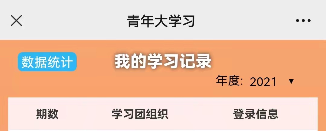 (二)所有参评的同学需提交带有个人信息的“青年大学习”网上主题团课学习记录(以下图为例)。2021年度全期青年大学习初次学习完成比例(需在学习当周完成,后期补学的不算在内)未达到100% 的同学取消参评资格,博士团支部可适当放宽比例要求。