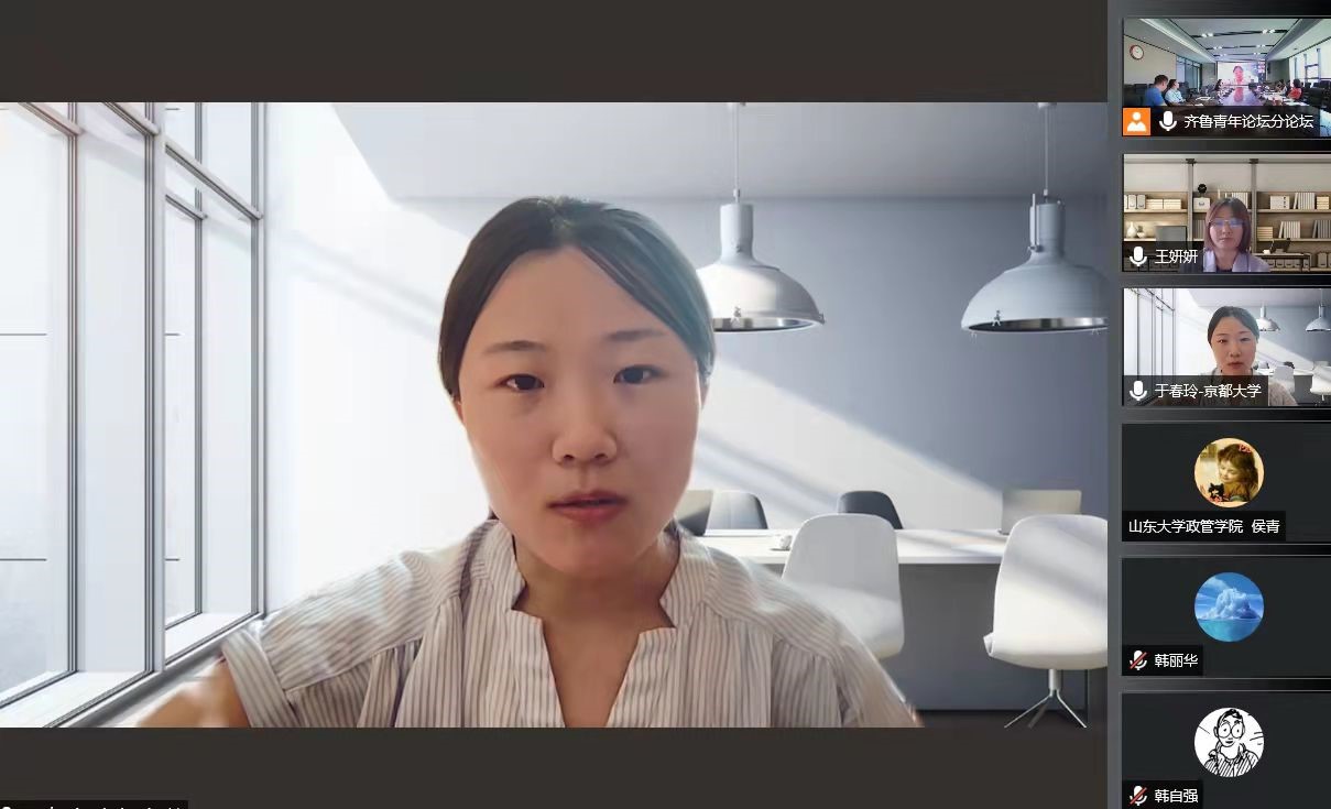 会中,清华大学王妍妍博士和京都大学于春玲博士分别就个人情况、学术研究成果、未来职业发展规划等方面做精彩汇报。根据分享内容,韩自强教授、马永驰教授、韩丽华副教授、王乙杰助理研究员分别就研究框架的解释能力、范围、边界以及具体研究方法等同两位青年学者展开讨论和交流。