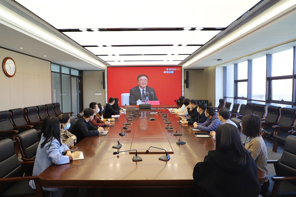 11月12日上午,政治学与公共管理学院在华岗苑南五楼中厅会议室组织教工集中收看了党的十九届六中全会新闻发布会,同时学院各党支部以各种形式组织师生收听收看发布会直播。
