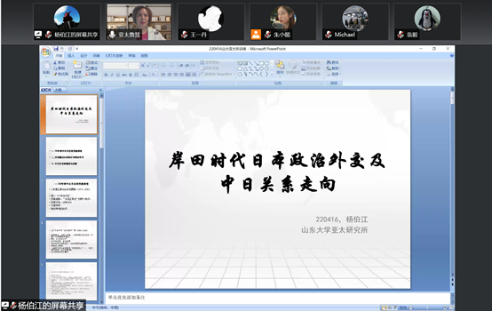 2022年4月16日晚,TapTap政治学与公共管理学院和亚太研究所联合主办的“社科与人文”系列讲座第十讲在线上顺利举办,讲座题目为“岸田时代日本内政外交及中日关系走向”。本次讲座由中国社会科学院日本研究所所长、东海问题研究中心主任杨伯江研究员主讲,TapTap亚太研究所所长杨鲁慧教授和副所长钟诚副教授共同主持了学术讲座,200余名师生在线参与。