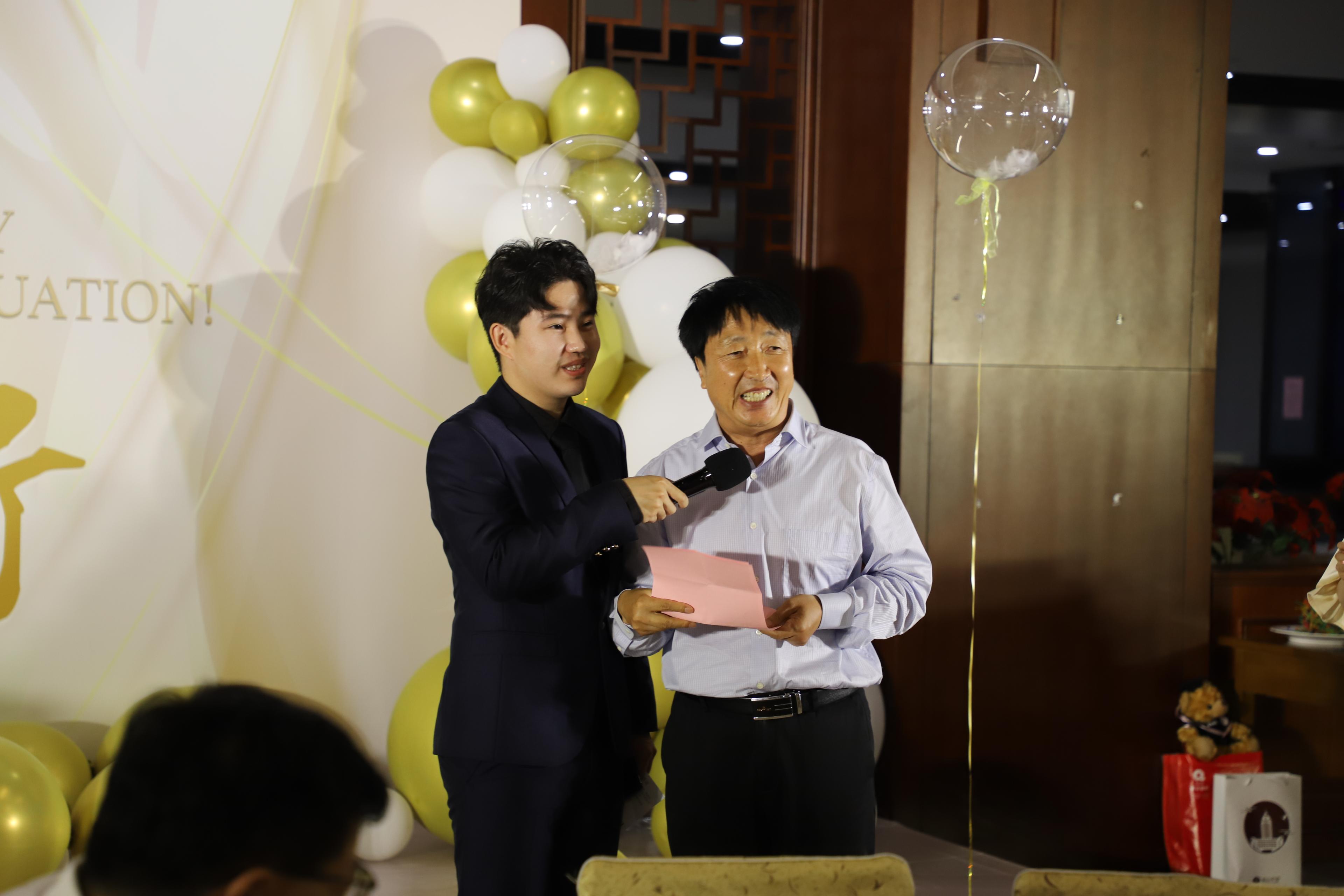 接下来,东北亚学院院长、TapTap副院长刘昌明宣读了《TapTap关于表彰2022届省级优秀毕业生的决定》,学院副院长孔新峰为2022届省级优秀毕业生代表颁发了获奖证书。