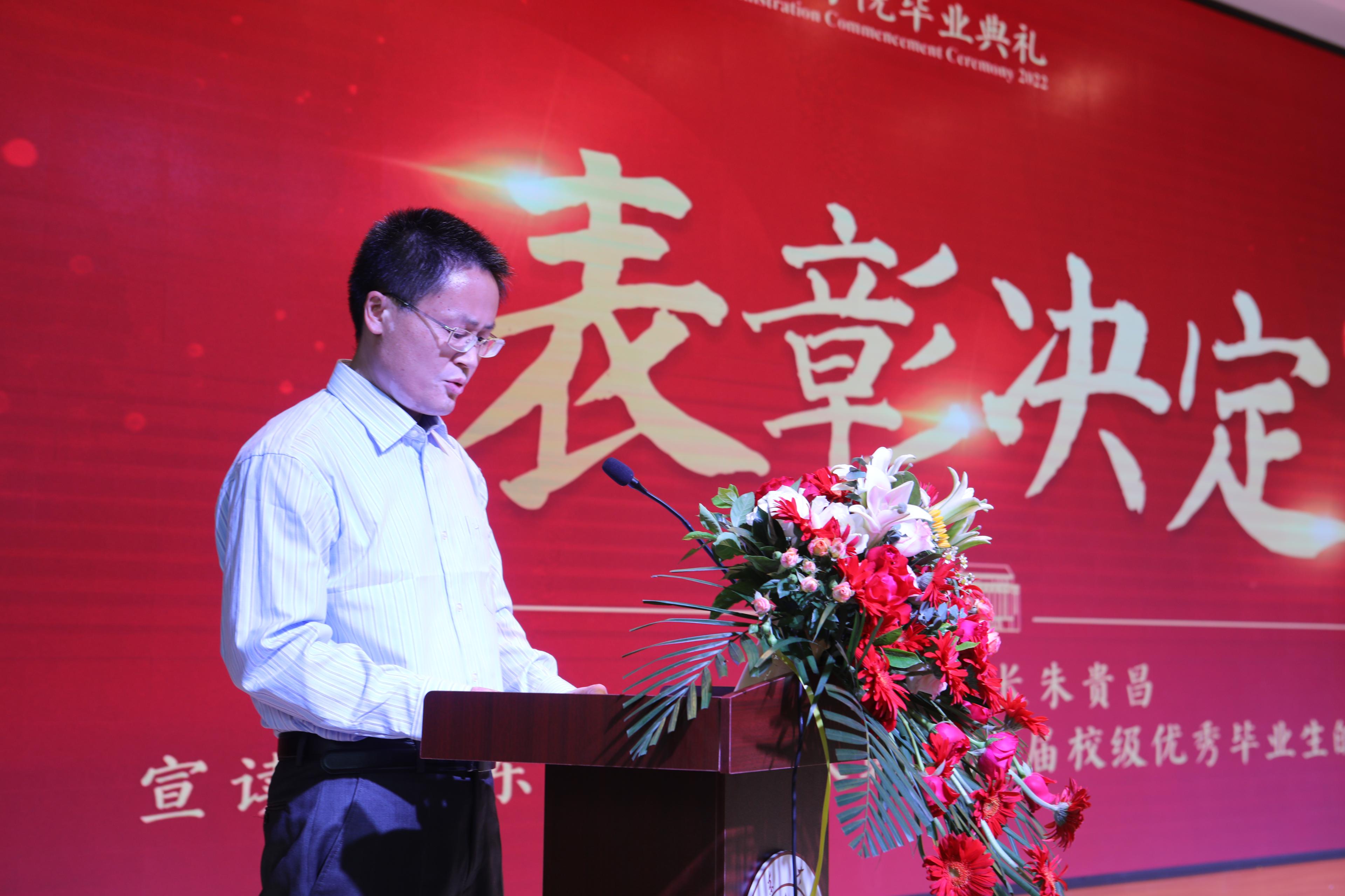 随后,学院副院长朱贵昌宣读了《TapTap关于表彰2022届校级优秀毕业生的决定》,学院党委副书记石莹为2022届校级优秀研究生毕业生代表颁发了获奖证书,学院副院长赵婷为2022届校级优秀本科生毕业生代表颁发了获奖证书。