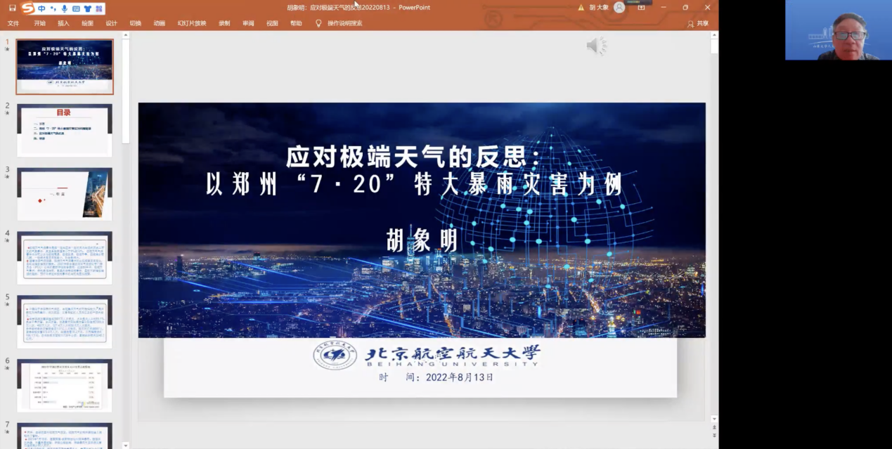 北京航空航天大学公共管理学院胡象明教授,北京师范大学社会发展与公共政策学院、风险治理创新研究中心主任张强教授,大连海事大学公共管理与人文艺术学院马晓雪教授,中共中央党校(国家行政学院)应急管理教研部、《中国应急管理科学》副主编钟开斌教授,中国政法大学应急管理法律与政策研究基地主任林鸿潮教授分别就应对极端天气的反思,气候相关灾害与新冠防护行为的关系,北极航道风险治理的数据赋能,以理念现代化引领体系和能力现代化,紧急权力的结构及其控制机制进行了分享。