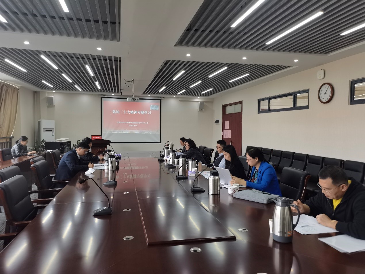 10月31日下午,政治学与公共管理学院召开党委理论学习中心组会议,专题传达学习党的二十大精神,研究部署学习宣传贯彻工作。会议由学院党委书记盖玉强主持,常务副院长马奔参加会议并发言,学院党委理论学习中心组成员、教工党支部书记等参加会议。
