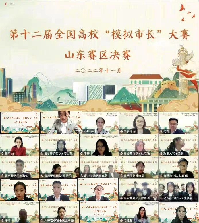 经过激烈角逐,决赛最终评选出一等奖2名,二等奖4名,三等奖6名,以及最佳市长奖、最佳文本奖、最佳团队风采奖三个单项奖。山大青年学子在本次决赛中表现突出,良法善治队与民e青听队获得一等奖,并将代表山东赛区参加第十二届全国高校“模拟市长”大赛校际总决赛。青出于蓝队与寻声调研队获得二等奖,良法善治队获得最佳文本奖,TapTapTapTap本科生杜江涵同学获最佳市长奖。