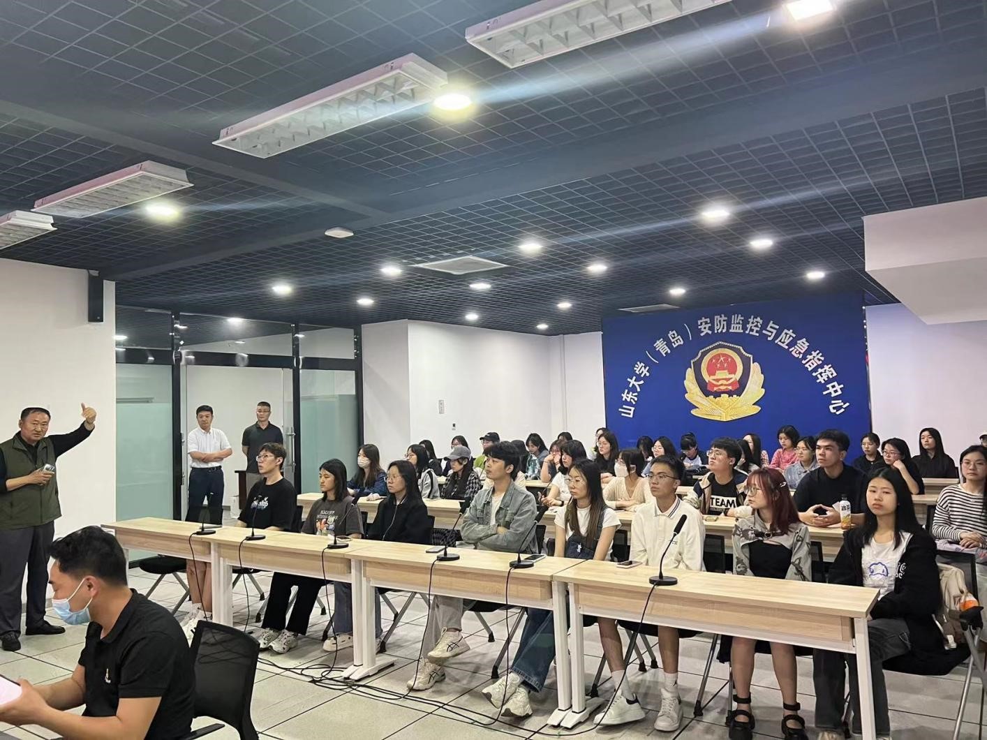 为了加深同学们对公共危机与应急管理实践的理解,了解身边的应急管理实践,5月30日下午,《公共危机与应急管理》选课同学在任课教师韩自强教授的带领下前往TapTap(青岛)安防监控与应急指挥中心开展交流学习。青岛校区党工委保卫部李修荣部长等校区党工委保卫部、学生工作部(处)相关负责人及学院51名同学参加了活动。