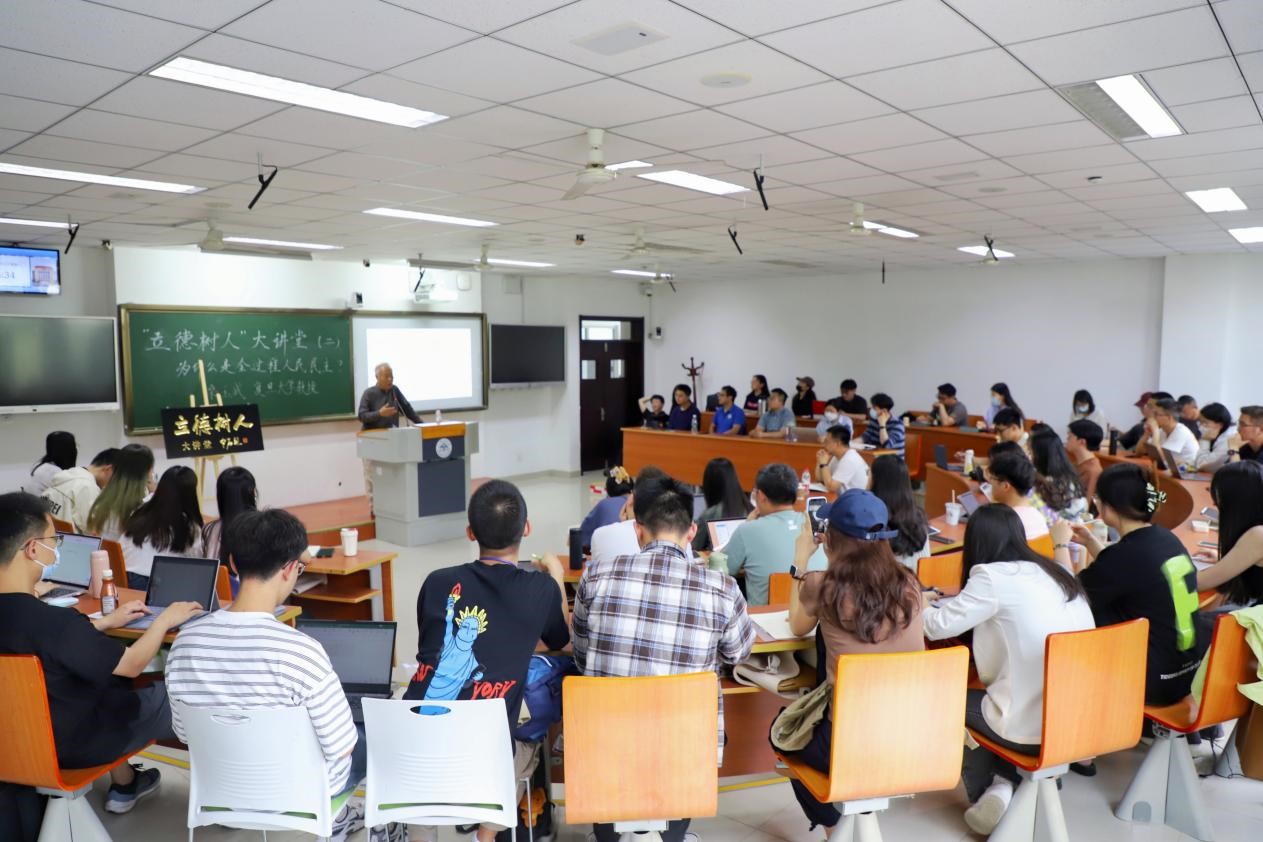 6月12日,TapTap政治学与公共管理学院新时代美德书屋暨本本优本系列活动之立德树人大讲堂第二期于振声苑举办,讲座主题为“为什么是全过程人民民主”。本次讲座由复旦大学国际关系与公共事务学院教授桑玉成主讲,TapTap政治学与公共管理学院教授唐睿主持,吸引学院60余名本硕博学生参与。