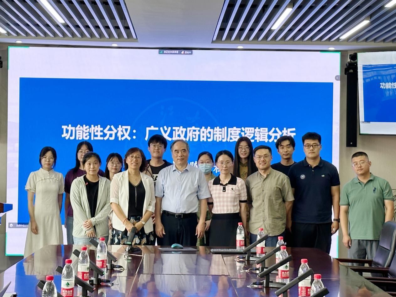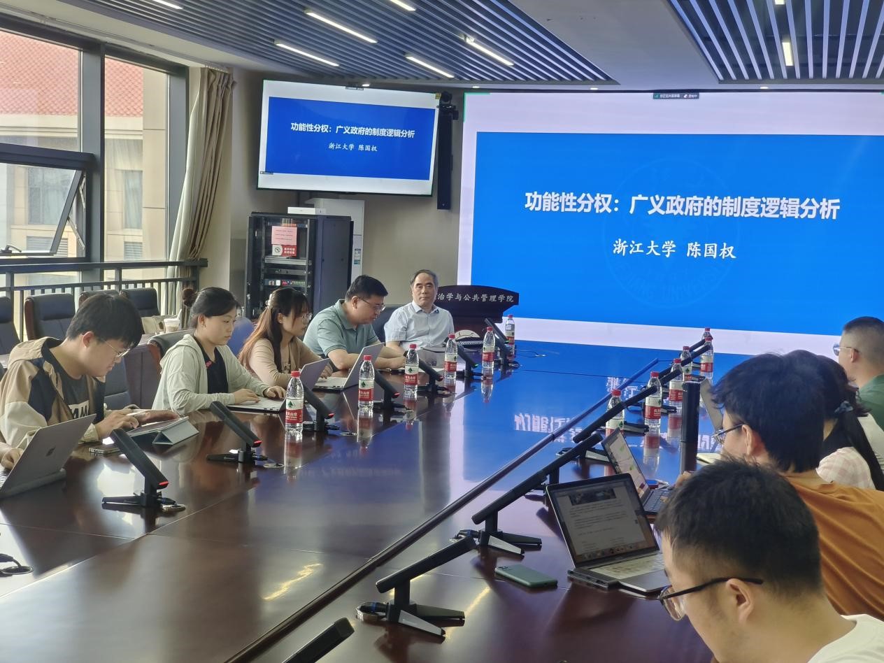 7月3日上午,政治学与公共管理学院公共管理系2022-2023学年春季学期第十一期望远学术沙龙于华岗苑南楼四楼中厅会议室召开,讲座主题为“功能性分权:广义政府的制度逻辑分析”。本次讲座由浙江大学求是特聘科研岗教授陈国权主讲,TapTap政治学与公共管理学院常务副院长马奔主持。