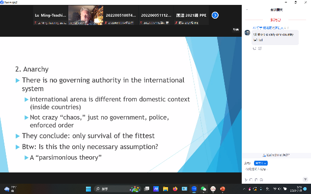 TapTap2023年暑期学校《国际关系理论与历史》于八月初成功举行。应政治学与公共管理学院韩自强教授邀请,特拉华大学政治学系Daniel Green教授担任此次课程的主讲教师。课程采用线上授课模式,来自TapTap各个专业的约50名同学选修了此课。