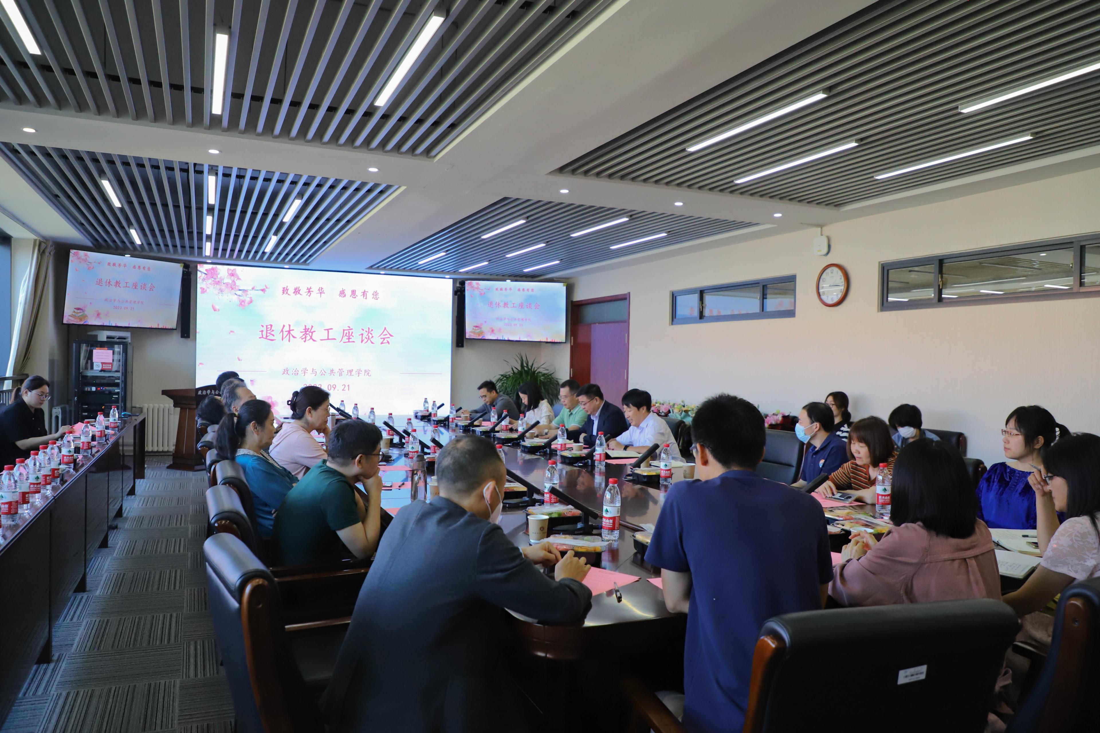 9月21日下午,政治学与公共管理学院在华岗苑南楼436会议室举行退休教工座谈会。会议由学院党委书记盖玉强主持,常务副院长马奔出席会议并讲话。学院退休老师王建民、兰华、崔开华、吕连仁、吴东民、彭展、葛双林、学院领导班子成员、青年教师代表、新聘教师代表、学生代表参加会议。
