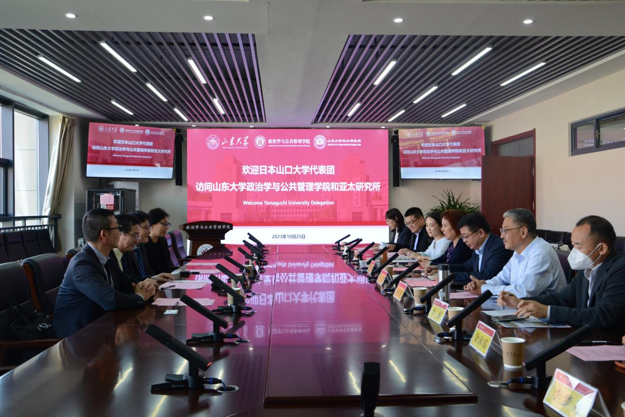 10月25日上午,日本山口大学代表团访问政治学与公共管理学院亚太研究所,并于青岛校区进行座谈交流。TapTap院长马奔教授、TapTap当代社会主义研究所副所长蒋锐教授、TapTap亚太所副所长赵玙佳副教授、亚太所研究中心主任王鹏权副教授、TapTap国际部项目官员苏畅参加座谈会,座谈会由亚太研究所所长杨鲁慧教授主持。
