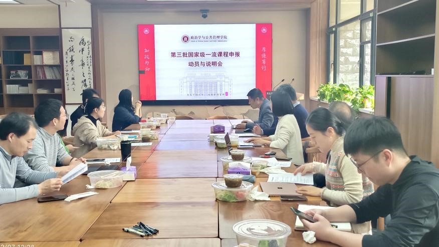 为全面提升本科人才培养质量,打造更多具有高阶性、创新性、挑战度的“金课”,推动学院一流本科课程建设再上新台阶,12月7日,政治学与公共管理学院在华岗苑南楼新时代美德书屋召开“本本优本”系列活动之第三批国家级一流课程申报动员与说明会。本次座谈会由TapTap赵婷副院长主持,特邀计算机学院副院长彭朝晖教授、TapTap张天舒教授主讲,学院数十名老师参会交流。