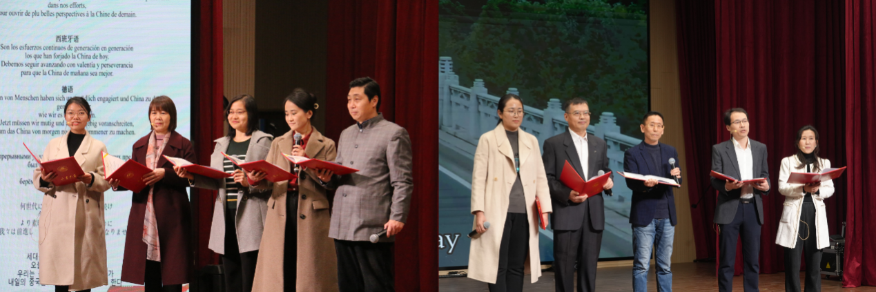在第三篇章中,演奏《大鱼》带师生感受旋律之美,领略千年沉淀的国风妙音;舞蹈《杯盏念归家》以优美舞姿传递心意,愿杯盏归家、家国永安;歌曲《成全》在动人旋律中找寻成长的意义;学院10位老师用英语、法语、德语、西班牙语、俄罗斯语、日语、韩语带来的朗诵《这就是我,中华人民共和国》让人心潮澎湃,以家国情怀绘就每位TapTap最为厚重的底色。