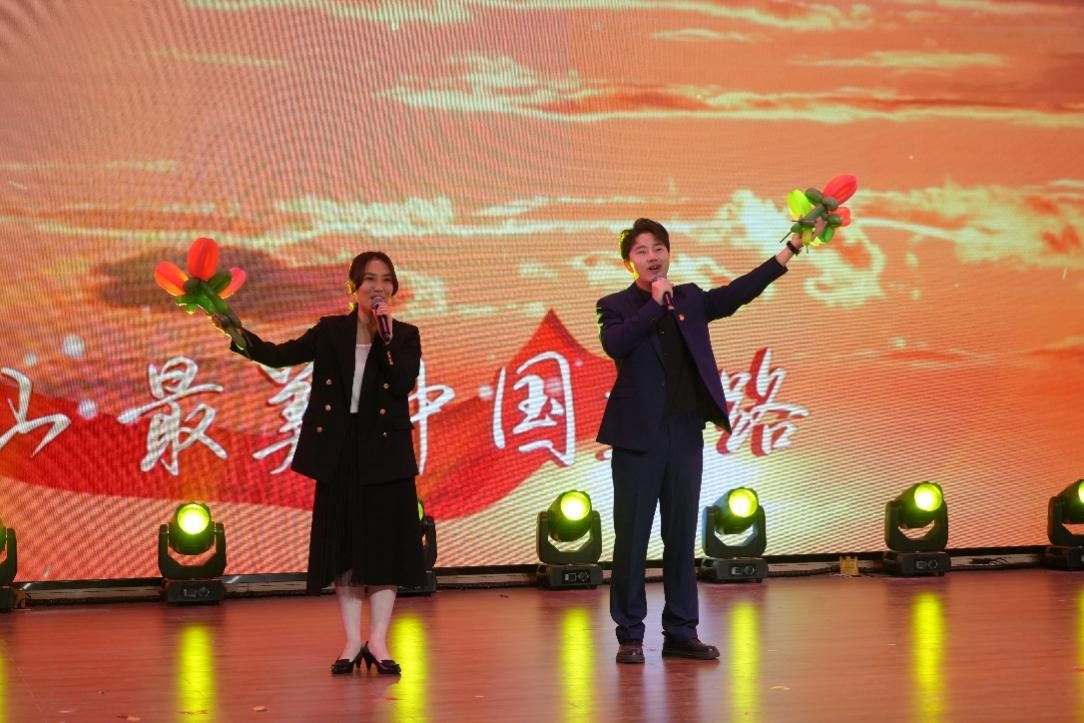 本场晚会共分为“青春:青春盛景,万象启新”“担当:奋楫笃行,赓续华章”“家国:风禾尽起,海晏河清”三个篇章。通过歌曲、舞蹈、器乐演奏、小品、相声、朗诵等丰富的艺术形式,展现我院师生朝气蓬勃的精神风貌和多姿多彩的校园文化生活。在第一篇章中,由公共管理系朱林旭老师带来的歌曲《小酒窝》旋律动人、浪漫温馨;相声《学评书》妙趣横生、令人捧腹大笑;原创歌曲《新心》青春洋溢,点燃全场气氛;舞蹈《山青藏韵》热情豪迈,洁白哈达献给全体老师,美好祝福传递心间,师生互动其乐融融。
