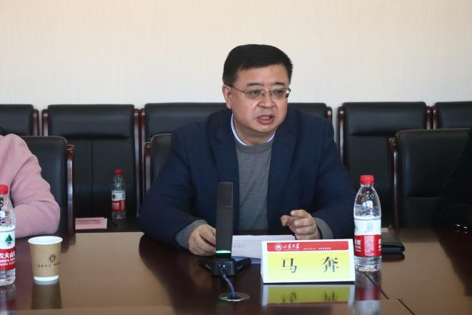 马奔首先从学院概况、研究生培养体系、导师队伍建设等方面介绍了学院研究生教育的整体情况,重点谈及学院研究生培养在立项资助、学习提升、成果认定等方面的全过程支持,以及导师队伍和师风师德建设方面的成果。