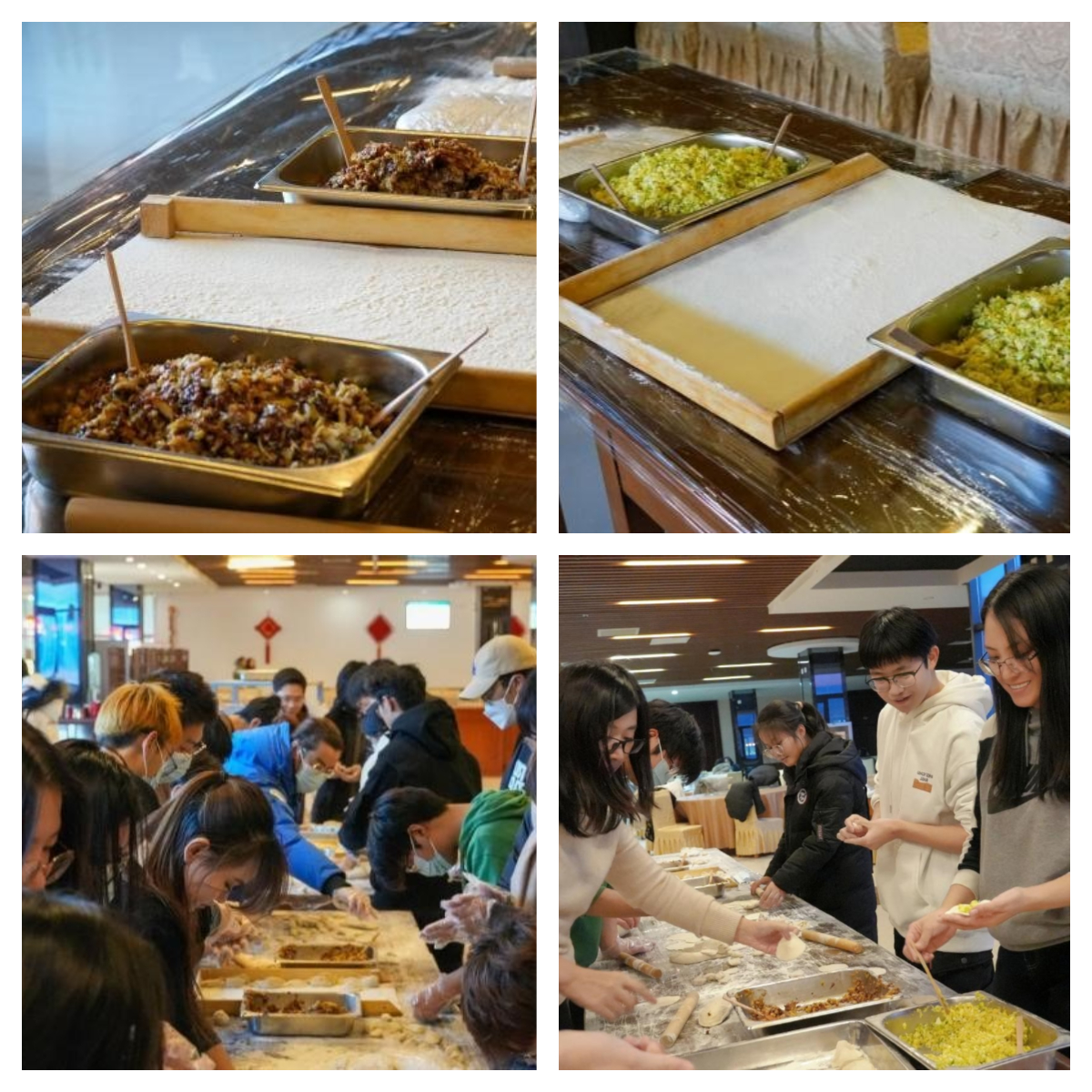 在包饺子环节,同学们,纷纷挽起袖子,和面、擀皮、包馅,每一个环节都充满了欢声笑语。虽然有的同学手法生疏,但大家互相帮助,交流着包饺子的心得和技巧,场面十分温馨。