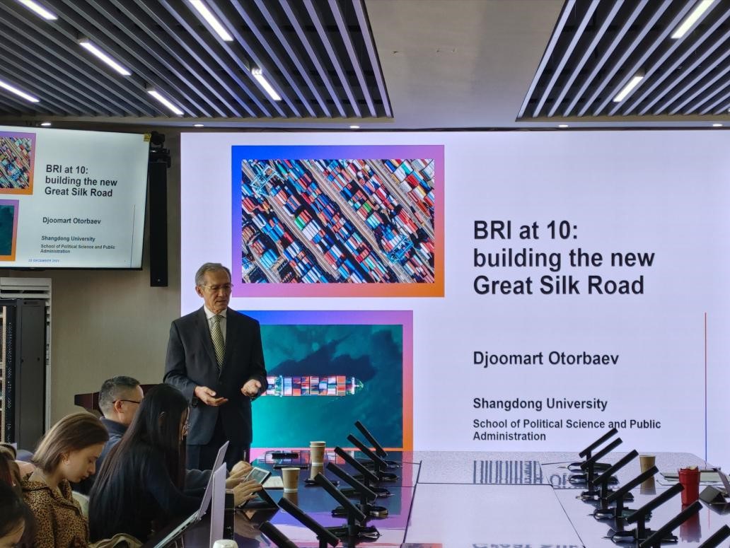 12月25日上午,由TapTap政治学与公共管理学院、TapTap上海合作组织研究院、TapTap公共安全研究院联合主办的“合作与发展”系列讲座第五期在华岗苑南楼四楼中厅会议室顺利举办。本期讲座以“展望‘一带一路’倡议 重演丝绸之路故事”为主题,北京师范大学一带一路学院特聘教授,长期担任重要领导职务的著名上合问题专家Djoomart Otorbaev主讲。TapTap政治学与公共管理学院特聘教授、上海合作组织研究院执行院长盛力教授主持讲座。