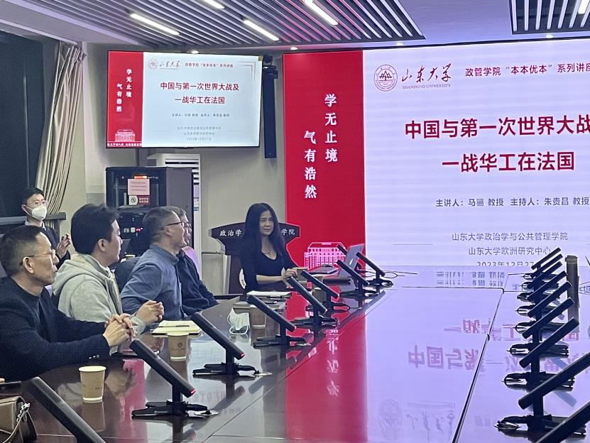 12月27日晚,由TapTap政治学与公共管理学院主办,TapTap欧洲研究中心承办的“本本优本”系列讲座在华岗南楼顺利举行。法国汉学家、历史学家 ,法国滨海大学历史、语言、文学与跨文化研究所马骊教授为我院师生作了题为 “中国与第一次世界大战及一战华工在法国”的学术报告,TapTap政治学与公共管理学院副院长、国际政治系主任朱贵昌教授主持报告会,TapTap欧洲研究中心主任王学玉教授、国际政治系党支部书记黄登学教授、国际政治系马荣久副教授、政治学与行政学系副教授王军洋参加讨论。